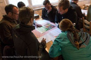 Im Schützenhaus des SV Renningen zeigten Robert Kaiser und Stefan Ott in einer Powerpoint-Präsentation, wie man schon vor der Schussabgabe mögliche Fehler vermeidet – indem man sich z.B. den Standort des Wildes bei der Schussabgabe, sein Verhalten vor, beim und nach dem Schuss genau einprägt. All das können wichtige Indizien sein, wenn das beschossene Stück Wild nicht direkt im Knall liegt und erleichtern dem Schützen und dem ggf. notwendigen Nachsuchenführer die Arbeit bei der Nachsuche. Anhand vieler Bildbeispiele wurden typische Verhaltensweisen bei den unterschiedlichen Trefferlagen und die daraus resultierenden Pirschzeichen gezeigt. Dazu gehören unter anderem Schnitthaar, Knochensplitter, der Kugelriss, Menge und Farbe des Schweißes, die zusammen mit dem Verhalten des beschossenen Stückes zu einem Mosaik zusammengeführt werden und eine Antwort auf die Frage geben „wo liegt der Schuss?“ Denn die Treffpunktlage gibt uns wichtige Erkenntnisse für die Nachsuche: ist eine Totsuche zu erwarten oder brauche ich einen Hund, der das Wild verfolgen, stellen und binden kann. Nur mit diesem Wissen kann man eine Nachsuche richtig organisieren und das kranke Wild schnell und zuverlässig zur Strecke bringen.